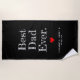 Minimal and modern “Best Dad Ever“ with hand drawn serif typography with a red heart in the centre and personalized names at the bottom.
