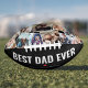 Cool fathers day football gift featuring stylish black background that can be changed to any color, a photo collage of 12 family pictures for you to replace with your own, the saying "BEST DAD EVER", a cute red heart, and the childrens names.