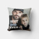 Throw pillow featuring your custom photos and the text "Best dad ever" as a white and light blue overlay in the bottom left corner.