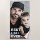 Beach towel featuring your custom photo and the text "Best dad ever" as a white and light blue overlay in the bottom left corner.