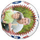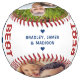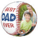 Best Dad Ever Photo Personalized Name Custom Softball features two of your favourite photos with the text "Best Dad Ever" in modern red and blue script and your custom text in the centre. Personalized by editing the text in the text boxes provided and adding your photos. PHOTO TIP: edit your photos prior to uploading to Zazzle with the subject in the centred. Designed by ©Evco Studio www.zazzle.com/store/evcostudio