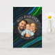 A sentimental photo card. A Father's Day card that you can upload your favourite photo to, along with text, "Best Dad Ever" and "we love you so much." Blue and green abstract background.