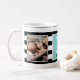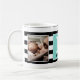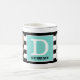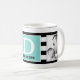 Happy Father's Day! Modern Best Dad Ever Coffee Mug. With Black and White Stripes and a personalized Robin's Egg Blue Monogram. Add 2 Photos!