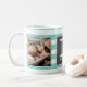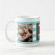 Happy Father's Day! Modern Best Dad Ever Coffee Mug. With Robin's Egg Blue and White Stripes and a personalized Monogram. Add 2 Photos!
