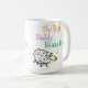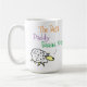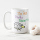 Mug for the best Daddy. Funny cartoon of a sheep on the top of a hill. The sheep says "Best Daddy Baaa None". Design repeats on both sides