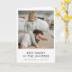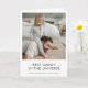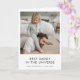Simple, stylish custom photo "Best Daddy in the Universe" Happy Father's Day card with modern minimalist typography and a simple white border. The photo and text can easily be personalized for a design as unique as your special Dad! The image shown is for illustration purposes only to be replaced with your own photo. The placeholder image is of a young dad with his little daughter sitting on his shoulders on a rustic rug in a scandi minimalist designed bedroom. They are playing and having fun.