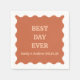 Elevate your wedding celebration with these stylish terracotta napkins, perfect for adding a warm, earthy touch to your décor. Featuring the phrase 'Best Day Ever' in elegant lettering, surrounded by a wavy border, these napkins bring a chic, modern vibe to your special day. Personalize with the couple’s names and wedding date for a unique, custom look. Ideal for boho, rustic, or autumn-themed weddings, these napkins effortlessly blend style and personalization. A stunning addition to your reception or cocktail hour that guests will remember.