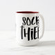 Introducing our two-sided Father's Day mug that features a personalized photo of your dog and his dad on one side and a hilarious dog quote on the other. It reads, "Sock thief." We can even customize the mug with your dog's name to make it extra special. Imagine your dad's face lighting up every time he takes a sip of his morning coffee or tea. This mug will bring joy and laughter to his daily routine, reminding him of the loving bond he shares with his furry best friend.