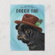 Cute dog theme father's day or birthday card featuring hand painted illustration of a pug puppy wearing a brown fedora hat. The text at the top says "you are the best doggie dad."
