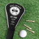 Enhance your father's golf gear with our Customized Golf Club Head Cover. Featuring two crossed golf clubs on a crisp white circle background, this head cover is accented by an additional white ring. A matching ribbon on the crossed clubs displays your choice of two or three of your father’s initials in elegant white lettering. The phrase “Best Dad By Par” is prominently displayed above and below the clubs, with three stars and a customizable area for adding names in white. ⛳