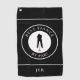 This bold black golf towel features a strong male golfer silhouette framed inside a crisp black‑and‑white emblem with curved text reading “Best Fiance By Par!”. A simple template allows you to personalize the design with a monogrammed name, initials, or short custom text. The solid black background keeps the look clean, modern, and masculine.