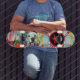 Whether you’re doing grinds on the half-pipe or kickflips in the street, this competition shaped board has supreme pop! Our decks are made of the best quality hard-rock maple and with our one-of-a-kind printing process; you get the best skateboard available in the world.