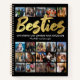 Personalized best friends notebook featuring a trendy black background that can be changed to any colour, the word "besties" in a faux gold foil script font, a friendship quote, your names, and a 20 square photo collage template for you to customize to your own.