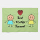 Best friends forever, cute cartoon best friends, one in yellow one in blue. Customizable gift idea for your true BFF. Choose your own Background color to suit your Kitchen.
