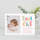 Celebrate the arrival of your sweetest gift with this colorful Christmas baby announcement card featuring a modern playful design and sibling photo layout. Perfect for sharing your newborn’s debut or first Christmas with family and friends, this cheerful card brings warmth and joy to the season. Personalize with your baby’s name, birth details, and a heartfelt message. Create yours today.