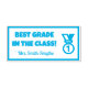 This motivating rubber stamp design features the motivational message "BEST GRADE IN THE CLASS!" and a customized tutor's name. It also has a decorative prize ribbon icon. It could be used by a teacher, educator, instructor, or tutor when marking assignments, to acknowledge that the student has done well.