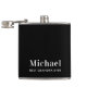 An elegant black flask for the best grandpa ever featuring his name monogrammed in classic white serif typography.