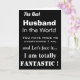 Best Husband in the world funny greeting card ~ this greeting card is suitable for almost any occasion and is sure to bring a smile. It makes the perfect funny, cute greeting card for any anniversary, birthday, holiday or just because gift.