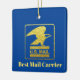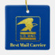 This ornament features a golden silhouette of the postal eagle symbol. Below is "Best Mail Carrier" and represents either a male or female mailman. You can change the text to say something else if you want. On the back, personalize this with a name and year. Makes a fun gift for someone you know who is a mail carrier or who works at the post office. Due to the design style, this can only be purchased on SQUARE ornaments. Designed by Sheila Cicchi, Brownielocks.com. All Rights Reserved.