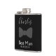 A great personalized gift for your Best Man, they will be very happy with this Bachelor party flask. Set upon a black background with a grey bow tie in the middle. Customize their name and the date of your wedding. Place your order today!