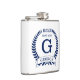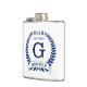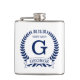 These 6 oz. flasks are a great favour for the best man in your wedding. They are traditional yet modern with a blue laurel wreath and banner with the wedding date, title/job and first initial and first name all in blue. They'd be great for a bachelor party or weekend.