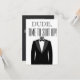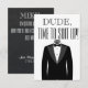 Dude Time to Suit up with tuxedo on front. Personalized with groomsman's name, message, groom's name, and a date given or the wedding date. Bow ties