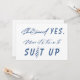 Modern best man proposal card featuring a modern handwriting whimsical blue script "She said yes, Now it's time to suit up", and doodled engagement ring and a striped necktie. ++++++++++++ Easy to personalize on the backside with your text and signature. +++++++++++++++ The simple calligraphy makes it suitable for any modern wedding theme. ++++++ If you need it in a specific colour matching your palette, please send a message (see below).