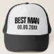 Best Man trucker hat for bachelor wedding party. Custom groomsmen caps. Personalize with your own name or date. Custom gifts for request or proposal.