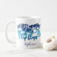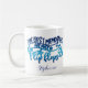 This fun summer coffee mug features text image "The Best Memories Are Made in Flip Flops" in blue glitter ombre and personalized with your name, or delete name for a clean look.