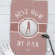 Best Mom By Par golf quote design in trendy white font features a female golfer silhouette set on a realistic golf ball image all on a dusty rose pink background. The golf ball is placed on a pink circle outlined in white complemented by a matching band also outlined in white. Personalize with template to add custom monogrammed initials or short line of text. If you have any questions regarding this or any of my designs please contact beachpausedesigns@gmail.com. Makes a perfect gift for Mom for Mother's Day, Birthday or Holidays! Custom requests accepted.