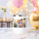 A super fun gift for moms, grandmas, or anyone special in your life. Easily add 3 photos and 2 lines of custom text to these beautiful wine or coffee tumblers. Current text reads "Best Mom Ever - Name" but easily change to any text of your choice. Makes a wonderful Mother's Day gift, birthday gift or everyday gift.