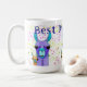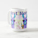 This lovely momma llama and her youngster are here to let your mom know she's the best ever. Beautiful spring colours of purple, teal, orange and pink along with colourful stars in the background make this mug a visual treat. Design fully wraps around the face of the mug. It is hand-drawn with no A.I. influence. Give your mom a one-of-a-kind artwork on a mug that shows you appreciate her.