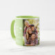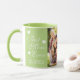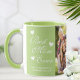 This Best Mom Ever mug in green colours is a template with a place for two of your photos and for typing names. The design is decorated with hearts, and the typography is elegant and modern. It's a perfect Mother's Day gift idea.