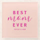 Celebrate Mother's Day with a chic, personalized touch. This modern hot pink 'Best Mom Ever' glass coaster is the perfect gift for the amazing mom in your life. Customize it with your names to create a heartfelt keepsake that she'll cherish forever.