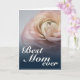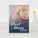 Close-up of pink rose on blue background and Mother's Day greetings. The rest of the card is free to design.