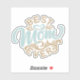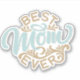 Modern and trendy vinyl car decal design that's perfect for Mother's Day features "Best Mom Ever" word art in tan and pastel blue, on black background