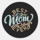 Modern and trendy sticker design that's perfect for Mother's Day features "Best Mom Ever" word art in tan and pastel blue, on black background
