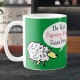 Gift mug for the best Dancing Mum. Funny cartoon of a talking sheep. The sheep says "Best Dancing Mum Baaa None".