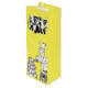 Mother's gift bottle bag. Fun illustrations shows a Cake Maker Decorating a Giant Cake while up a stepladder. Gift for the Best Mum. Yellow background.