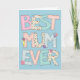 Celebrate Mother's Day with this blue card featuring whimsical text that reads 'Best Mum Ever.' Include your own loving words on the inside of this card effortlessly with the text template provided.
