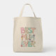 Celebrate Mother's Day with this cute grocery tote bag that features whimsical text that reads 'Best Mum Ever.'