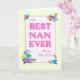 A pretty Mother's Day card for the BEST NAN EVER. The design has a yellow check gingham border surrounding the words, 'To the BEST NAN EVER From Both of Us, in magenta pink lettering on a lightly textured white background. There are bright clusters of multi-coloured flowers in the corners and a small magenta pink heart. The inside message can be customized or deleted if you wish.