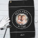 Creating your own golf towel is easy with our user-friendly template. All you need to do is upload your best photo and enter your initials, name, or any text you want. You can also customize the colours of the text and the background to match your papa's style. The photo and the text are printed in white with two circular white borders, creating a striking contrast with the classic black background.