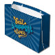 Make his Father's Day gift extra special with this awesome gift bag for grandpa. Design features "Best Pappous Ever" in blue and yellow retro lettering on a blue sunburst background.