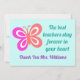 Beautiful custom card with your favourite teacher's name in purple under a pretty pink butterfly. Express thanks and appreciation with inspirational quote "the best teachers stay forever in your heart" in teal. Cute gift for a preschool or elementary teacher who likes butterflies. Have the whole class sign it!