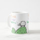 Mug for a Teacher. Funny cartoon of a sheep on the top of a hill. The sheep says "Best Baaa None". Design repeats on both sides.