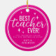 Best Teacher Ever Pink Script Retro Ceramic Ornament