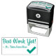 This motivating rubber stamp design features the motivational feedback message "Best Work Yet!" and a custom teacher's or educator's name. It also features a decorative checkmark icon. It could be used by a teacher, educator, or tutor when grading student work, to acknowledge that a student has done an exceptional job.