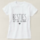 A minimalist black-and-white design featuring the text "BESTIES" in bold, thin letters, followed by "Just Like Our Moms" in a smaller font beneath it. A small heart icon adds a touch of warmth, symbolizing close friendships inspired by motherly bonds.