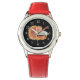 A watercolor of a lovely, orange red betta male betta fish adorns this fun watch!